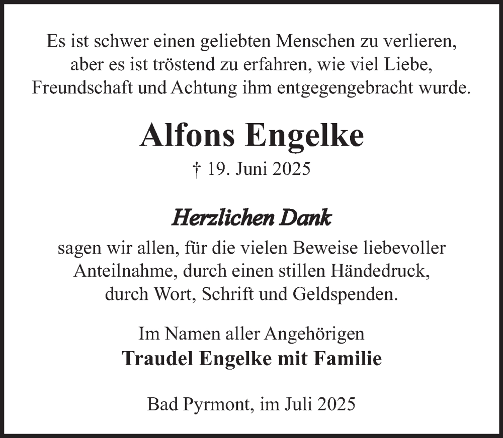 Hier finden Sie alle Traueranzeigen aus der Zeitung, die bisher für Alfons Engelke erschienen sind. Weitere Traueranzeigen, die in der Zeitung erscheinen, werden hier ebenfalls aufgelistet