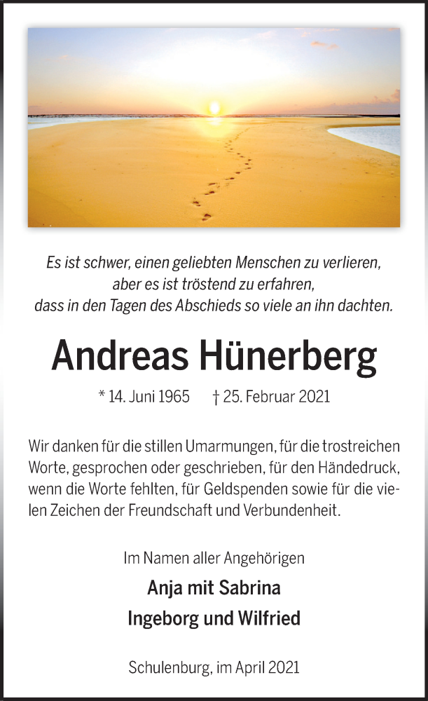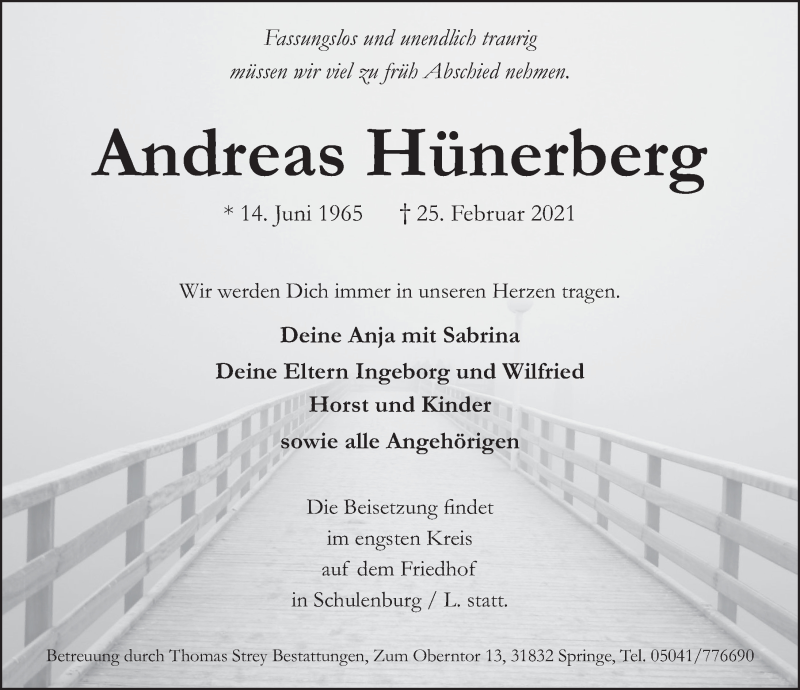 Hier finden Sie alle Traueranzeigen aus der Zeitung, die bisher für Andreas Hünerberg erschienen sind. Weitere Traueranzeigen, die in der Zeitung erscheinen, werden hier ebenfalls aufgelistet