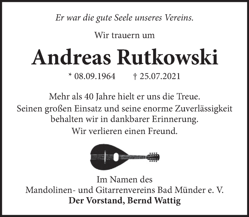 Hier finden Sie alle Traueranzeigen aus der Zeitung, die bisher für Andreas Rutkowski erschienen sind. Weitere Traueranzeigen, die in der Zeitung erscheinen, werden hier ebenfalls aufgelistet