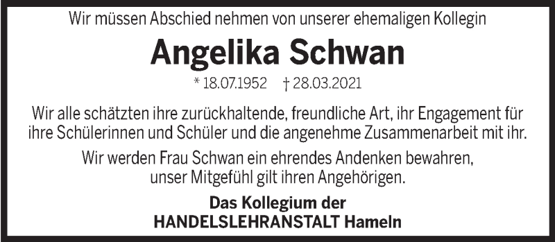 Hier finden Sie alle Traueranzeigen aus der Zeitung, die bisher für Angelika Schwan erschienen sind. Weitere Traueranzeigen, die in der Zeitung erscheinen, werden hier ebenfalls aufgelistet