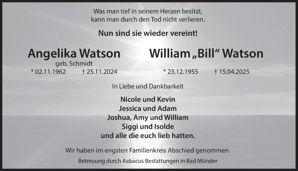 Hier finden Sie alle Traueranzeigen aus der Zeitung, die bisher für Angelika Watson erschienen sind. Weitere Traueranzeigen, die in der Zeitung erscheinen, werden hier ebenfalls aufgelistet