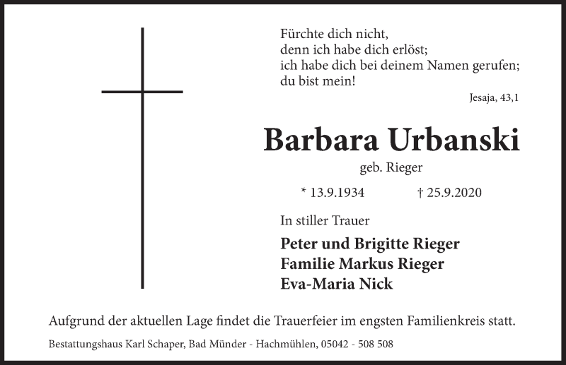 Hier finden Sie alle Traueranzeigen aus der Zeitung, die bisher für Barbara Urbanski erschienen sind. Weitere Traueranzeigen, die in der Zeitung erscheinen, werden hier ebenfalls aufgelistet