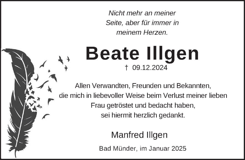 Hier finden Sie alle Traueranzeigen aus der Zeitung, die bisher für Beate Illgen erschienen sind. Weitere Traueranzeigen, die in der Zeitung erscheinen, werden hier ebenfalls aufgelistet