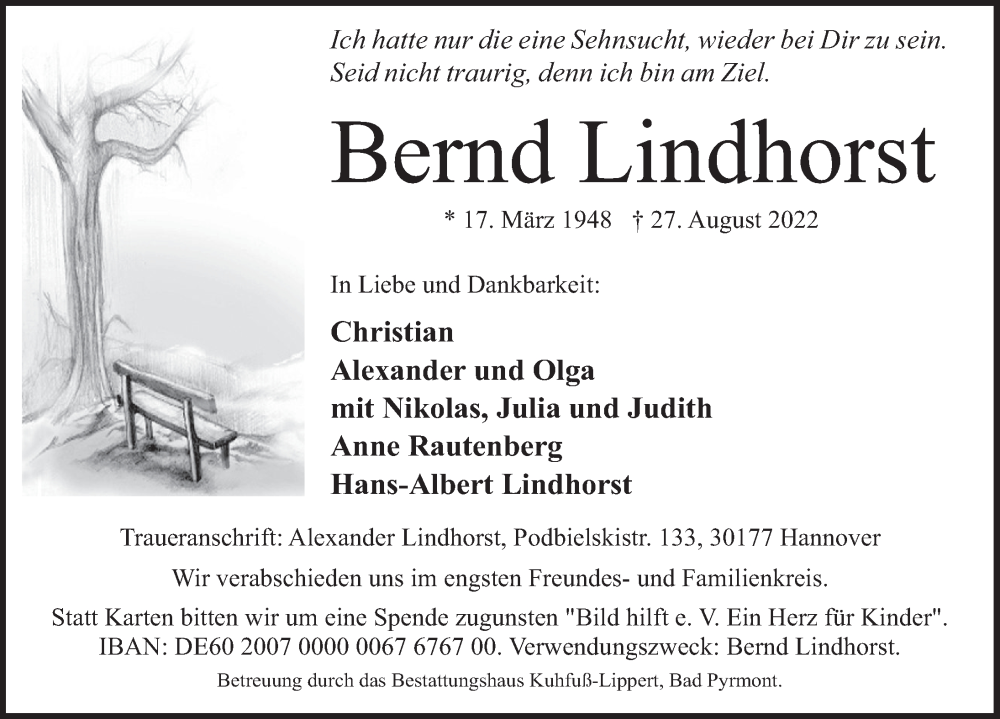 Hier finden Sie alle Traueranzeigen aus der Zeitung, die bisher für Bernd Lindhorst erschienen sind. Weitere Traueranzeigen, die in der Zeitung erscheinen, werden hier ebenfalls aufgelistet