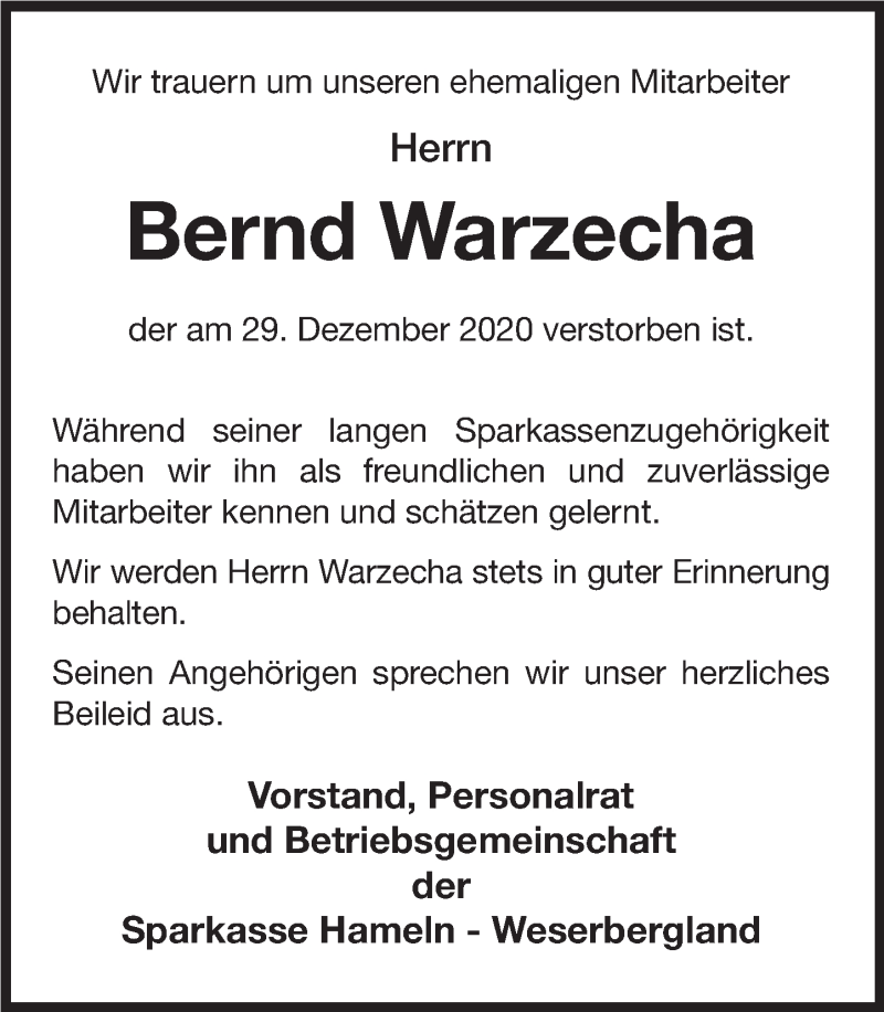 Hier finden Sie alle Traueranzeigen aus der Zeitung, die bisher für Bernd Warzecha erschienen sind. Weitere Traueranzeigen, die in der Zeitung erscheinen, werden hier ebenfalls aufgelistet