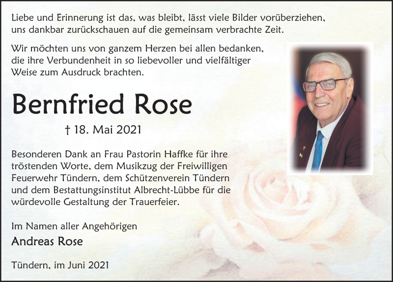 Hier finden Sie alle Traueranzeigen aus der Zeitung, die bisher für Bernfried Rose erschienen sind. Weitere Traueranzeigen, die in der Zeitung erscheinen, werden hier ebenfalls aufgelistet