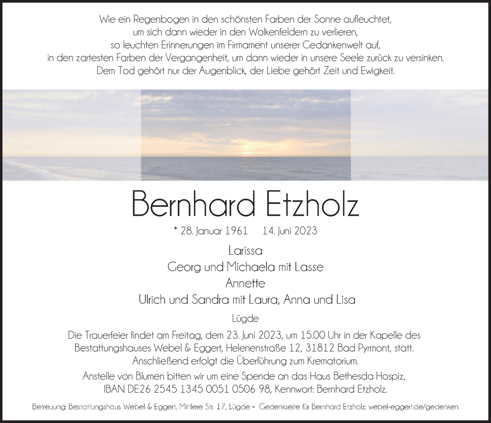Hier finden Sie alle Traueranzeigen aus der Zeitung, die bisher für Bernhard Etzholz erschienen sind. Weitere Traueranzeigen, die in der Zeitung erscheinen, werden hier ebenfalls aufgelistet