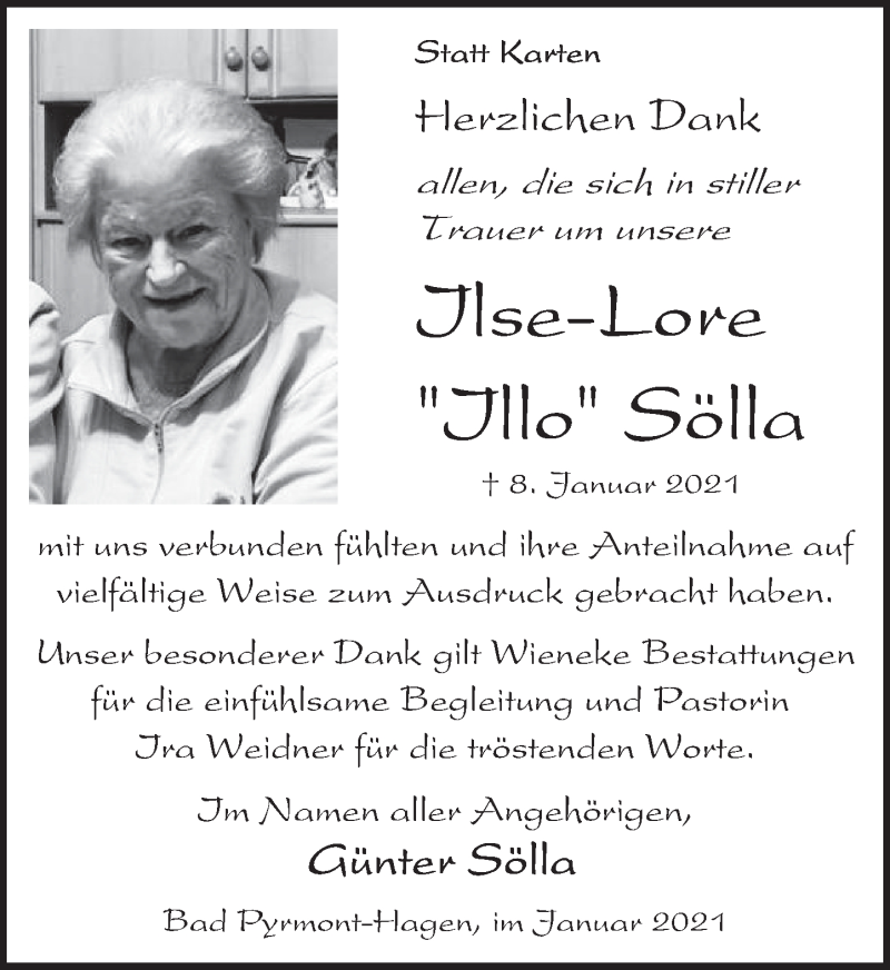 Hier finden Sie alle Traueranzeigen aus der Zeitung, die bisher für BIlse-Lore Sölla erschienen sind. Weitere Traueranzeigen, die in der Zeitung erscheinen, werden hier ebenfalls aufgelistet