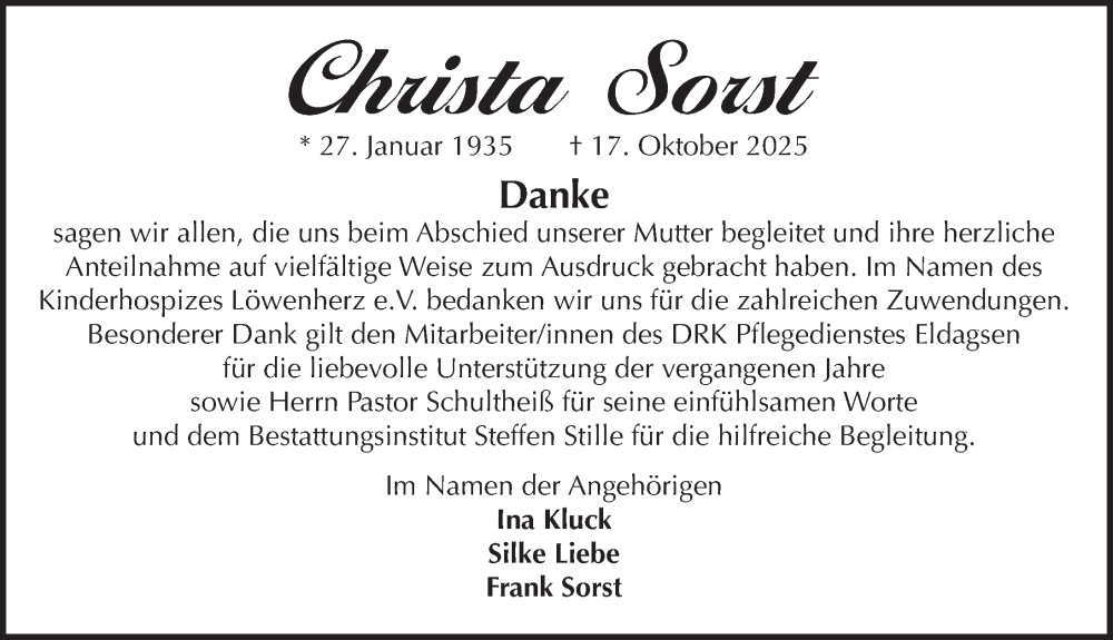 Hier finden Sie alle Traueranzeigen aus der Zeitung, die bisher für Christa Sorst erschienen sind. Weitere Traueranzeigen, die in der Zeitung erscheinen, werden hier ebenfalls aufgelistet