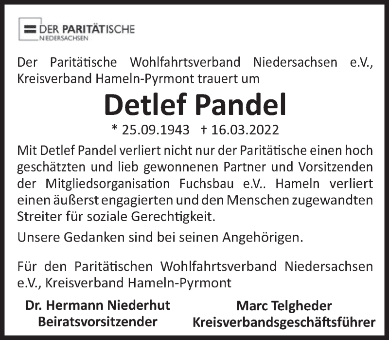 Hier finden Sie alle Traueranzeigen aus der Zeitung, die bisher für Detlef Pandel erschienen sind. Weitere Traueranzeigen, die in der Zeitung erscheinen, werden hier ebenfalls aufgelistet