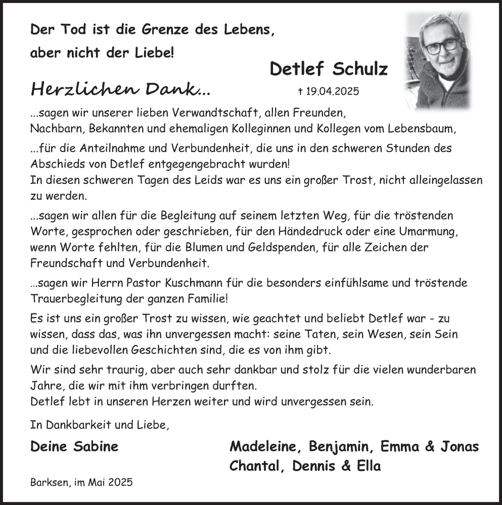 Hier finden Sie alle Traueranzeigen aus der Zeitung, die bisher für Detlef Schulz erschienen sind. Weitere Traueranzeigen, die in der Zeitung erscheinen, werden hier ebenfalls aufgelistet