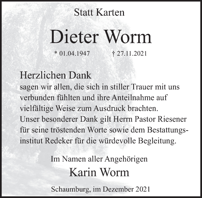 Hier finden Sie alle Traueranzeigen aus der Zeitung, die bisher für Dieter Worm erschienen sind. Weitere Traueranzeigen, die in der Zeitung erscheinen, werden hier ebenfalls aufgelistet