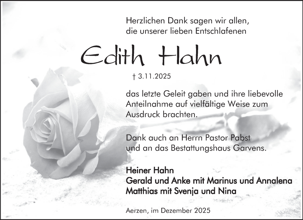 Hier finden Sie alle Traueranzeigen aus der Zeitung, die bisher für Edith Hahn erschienen sind. Weitere Traueranzeigen, die in der Zeitung erscheinen, werden hier ebenfalls aufgelistet