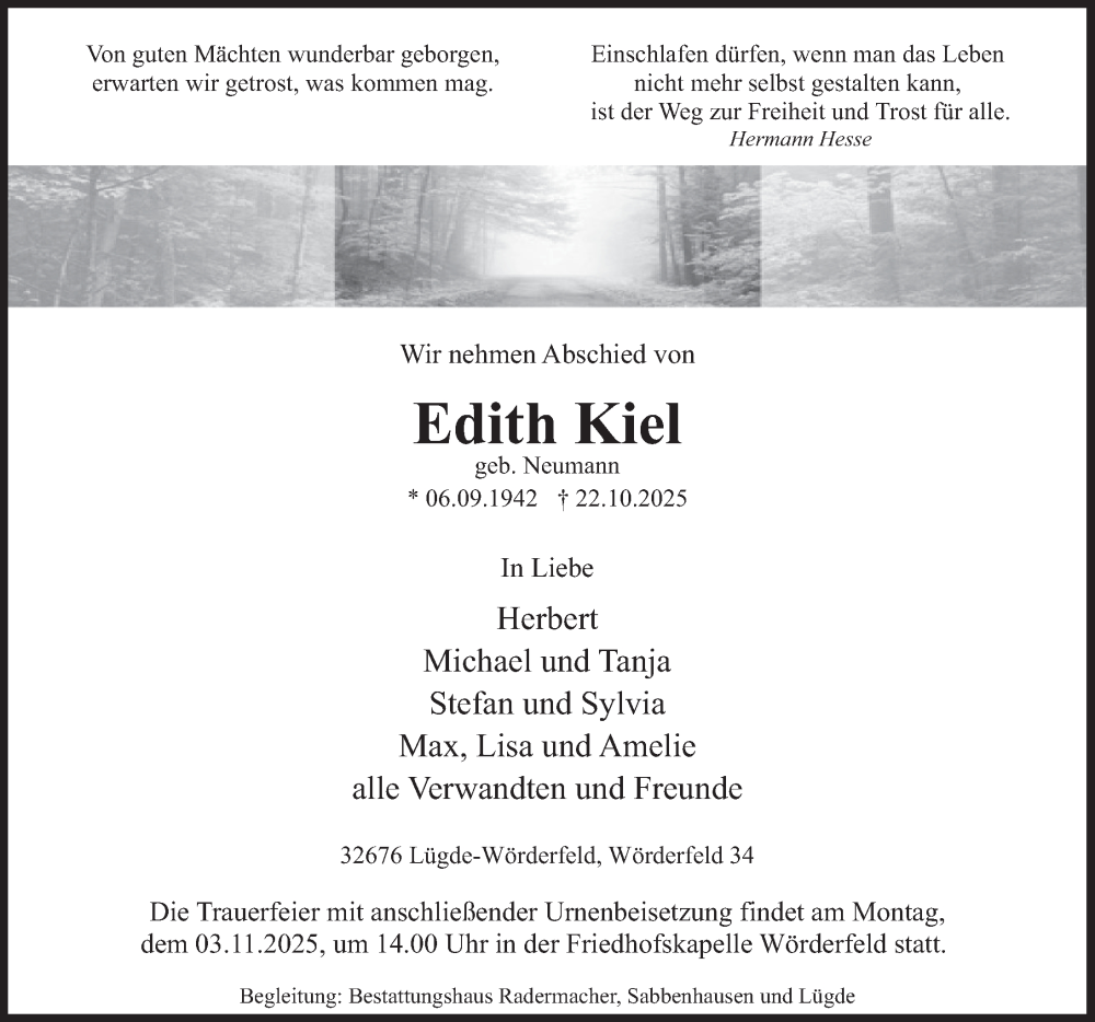 Hier finden Sie alle Traueranzeigen aus der Zeitung, die bisher für Edith Kiel erschienen sind. Weitere Traueranzeigen, die in der Zeitung erscheinen, werden hier ebenfalls aufgelistet