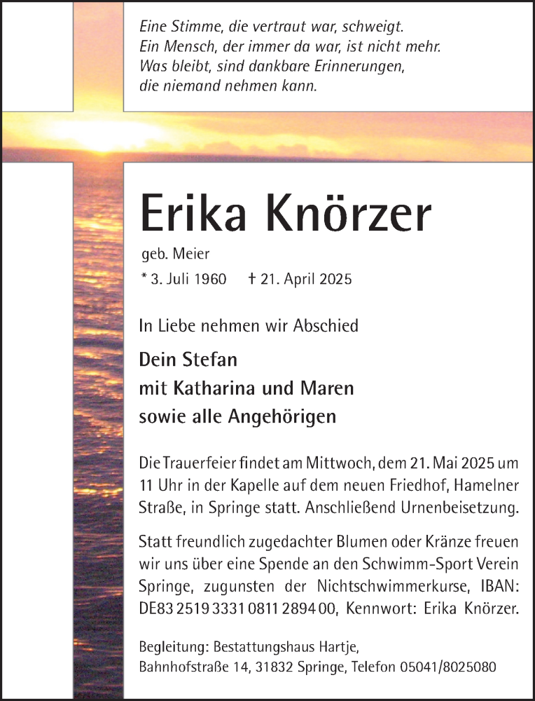 Hier finden Sie alle Traueranzeigen aus der Zeitung, die bisher für Erika Knörzer erschienen sind. Weitere Traueranzeigen, die in der Zeitung erscheinen, werden hier ebenfalls aufgelistet