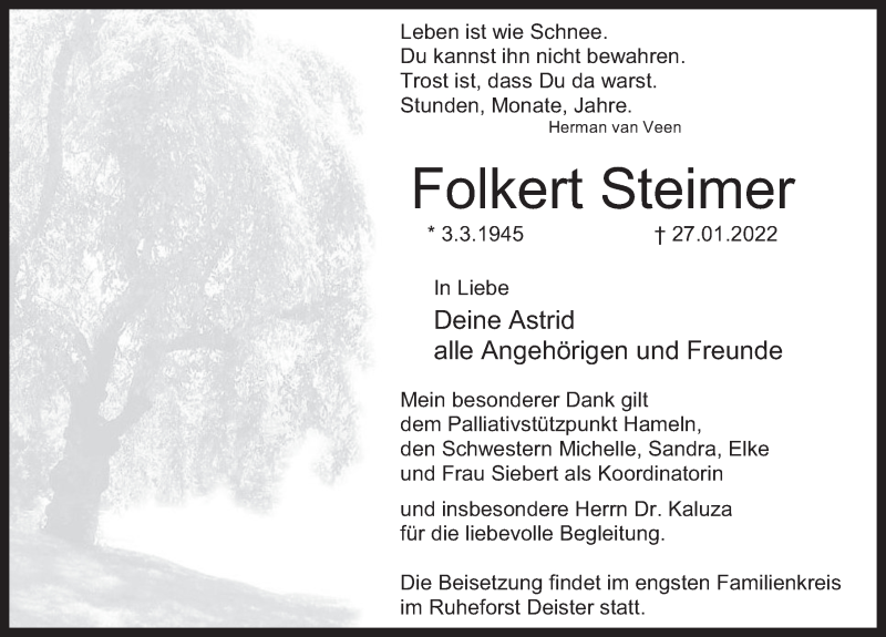 Hier finden Sie alle Traueranzeigen aus der Zeitung, die bisher für Folkert Steimer erschienen sind. Weitere Traueranzeigen, die in der Zeitung erscheinen, werden hier ebenfalls aufgelistet