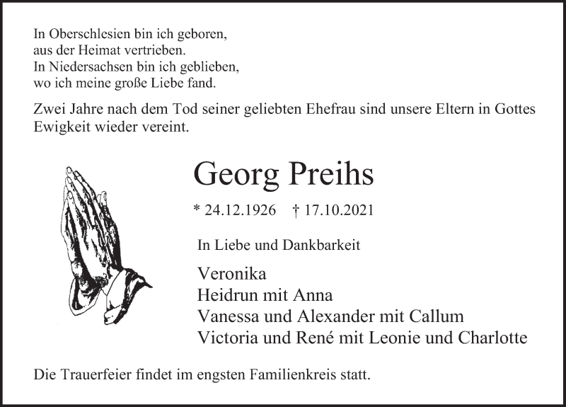 Hier finden Sie alle Traueranzeigen aus der Zeitung, die bisher für Georg Preihs erschienen sind. Weitere Traueranzeigen, die in der Zeitung erscheinen, werden hier ebenfalls aufgelistet