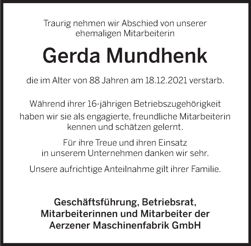 Hier finden Sie alle Traueranzeigen aus der Zeitung, die bisher für Gerda Mundhenk erschienen sind. Weitere Traueranzeigen, die in der Zeitung erscheinen, werden hier ebenfalls aufgelistet