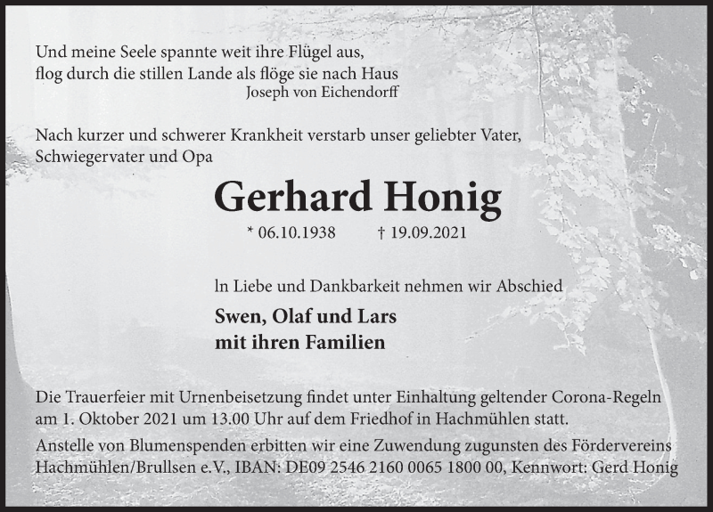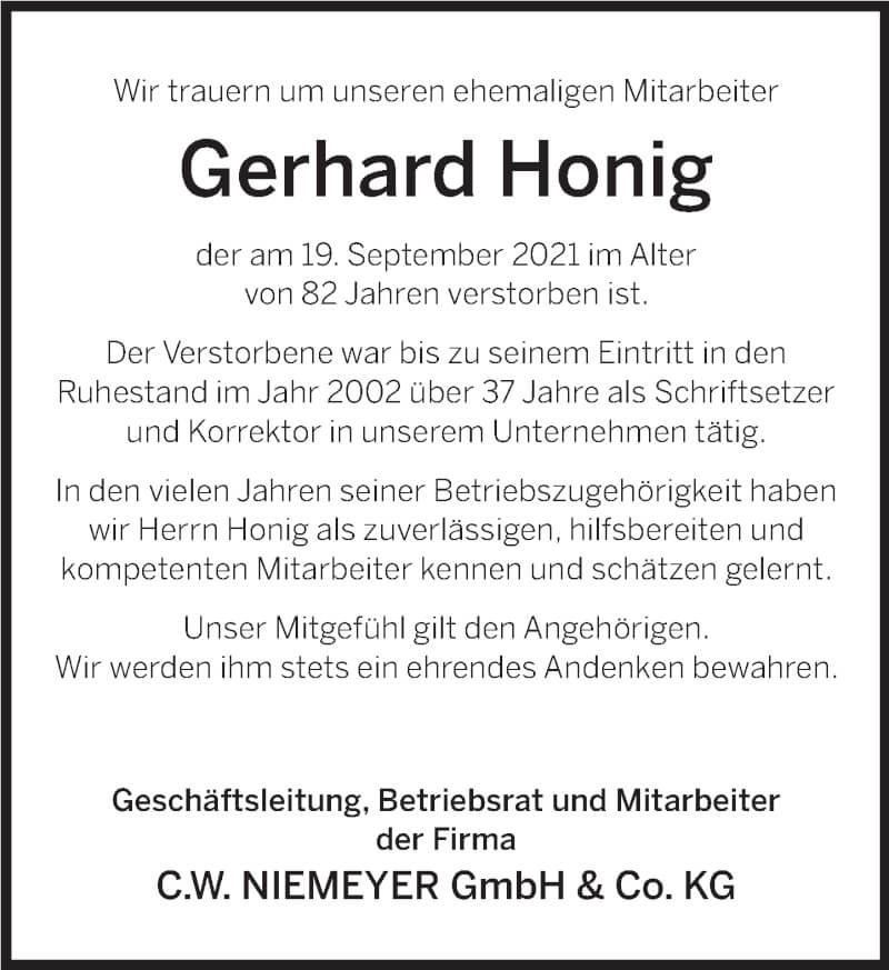 Hier finden Sie alle Traueranzeigen aus der Zeitung, die bisher für Gerhard Honig erschienen sind. Weitere Traueranzeigen, die in der Zeitung erscheinen, werden hier ebenfalls aufgelistet