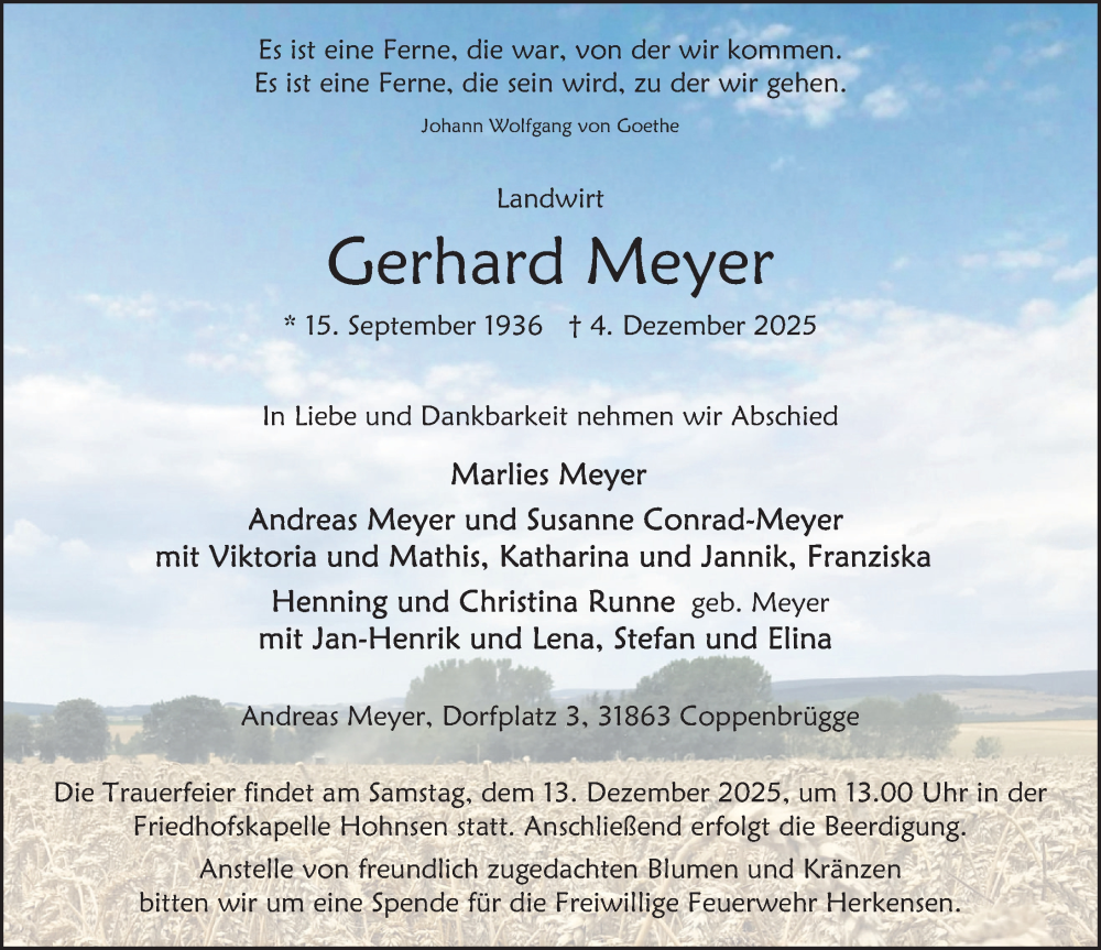 Hier finden Sie alle Traueranzeigen aus der Zeitung, die bisher für Gerhard Meyer erschienen sind. Weitere Traueranzeigen, die in der Zeitung erscheinen, werden hier ebenfalls aufgelistet