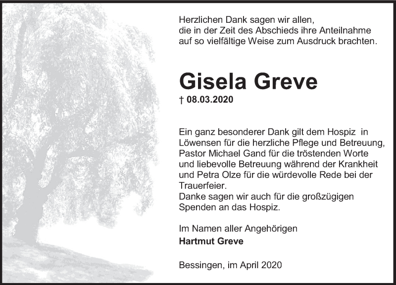 Hier finden Sie alle Traueranzeigen aus der Zeitung, die bisher für Gisela Greve erschienen sind. Weitere Traueranzeigen, die in der Zeitung erscheinen, werden hier ebenfalls aufgelistet