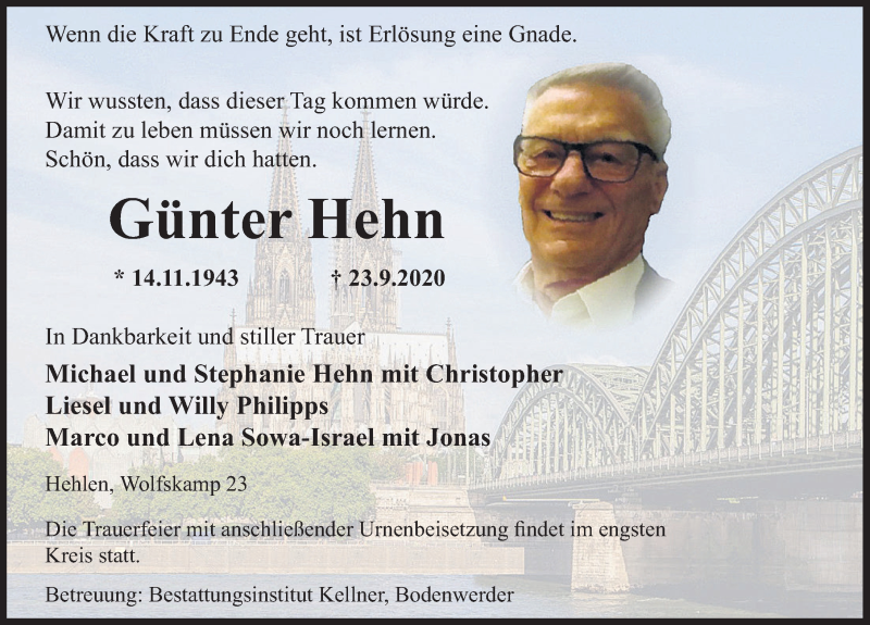 Hier finden Sie alle Traueranzeigen aus der Zeitung, die bisher für Günter Hehn erschienen sind. Weitere Traueranzeigen, die in der Zeitung erscheinen, werden hier ebenfalls aufgelistet