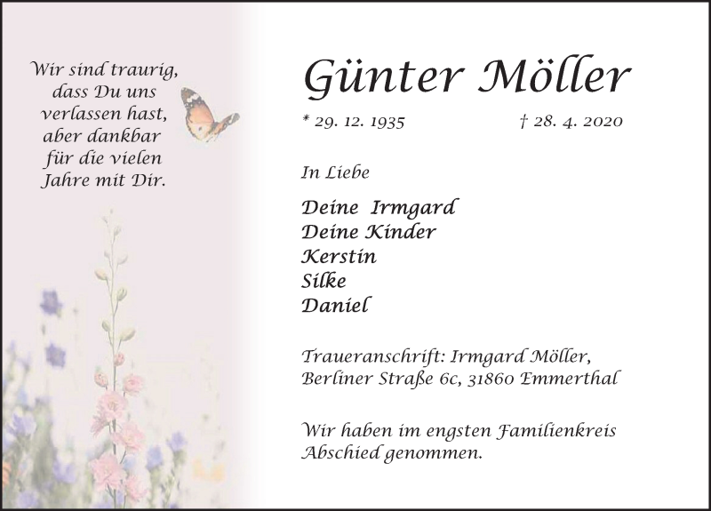 Hier finden Sie alle Traueranzeigen aus der Zeitung, die bisher für Günter Möller erschienen sind. Weitere Traueranzeigen, die in der Zeitung erscheinen, werden hier ebenfalls aufgelistet