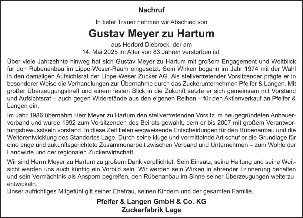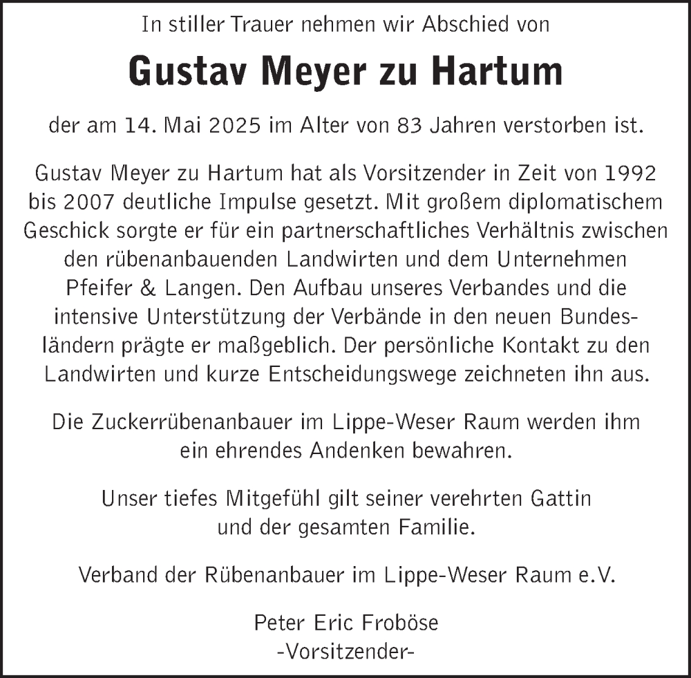 Hier finden Sie alle Traueranzeigen aus der Zeitung, die bisher für Gustav Meyer zu Hartum erschienen sind. Weitere Traueranzeigen, die in der Zeitung erscheinen, werden hier ebenfalls aufgelistet