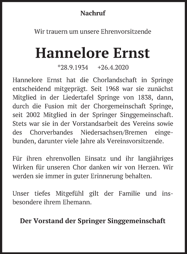 Hier finden Sie alle Traueranzeigen aus der Zeitung, die bisher für Hannelore Ernst erschienen sind. Weitere Traueranzeigen, die in der Zeitung erscheinen, werden hier ebenfalls aufgelistet