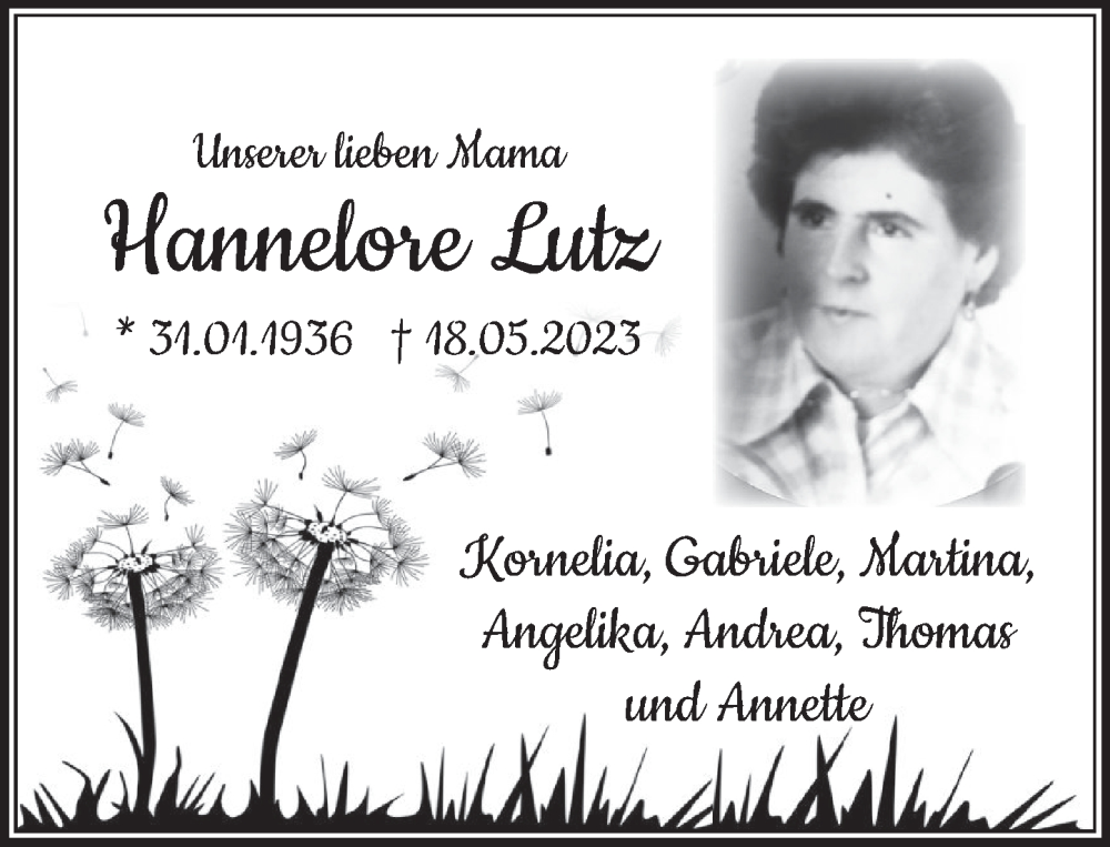 Hier finden Sie alle Traueranzeigen aus der Zeitung, die bisher für Hannelore Lutz erschienen sind. Weitere Traueranzeigen, die in der Zeitung erscheinen, werden hier ebenfalls aufgelistet