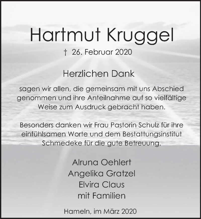 Hier finden Sie alle Traueranzeigen aus der Zeitung, die bisher für Hartmut Kruggel erschienen sind. Weitere Traueranzeigen, die in der Zeitung erscheinen, werden hier ebenfalls aufgelistet