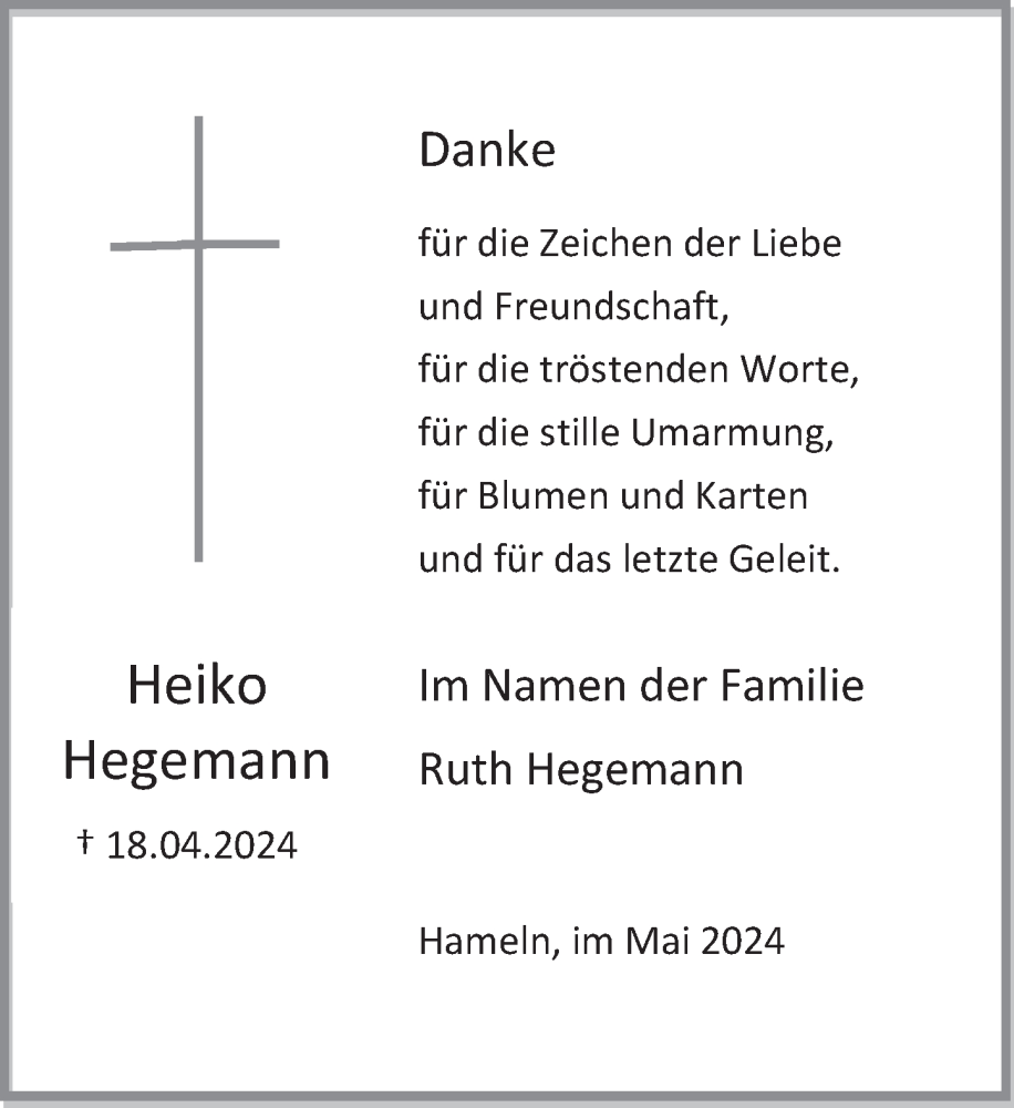 Hier finden Sie alle Traueranzeigen aus der Zeitung, die bisher für Heiko Hegemann erschienen sind. Weitere Traueranzeigen, die in der Zeitung erscheinen, werden hier ebenfalls aufgelistet