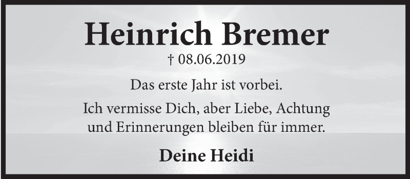 Hier finden Sie alle Traueranzeigen aus der Zeitung, die bisher für Heinrich Bremer erschienen sind. Weitere Traueranzeigen, die in der Zeitung erscheinen, werden hier ebenfalls aufgelistet