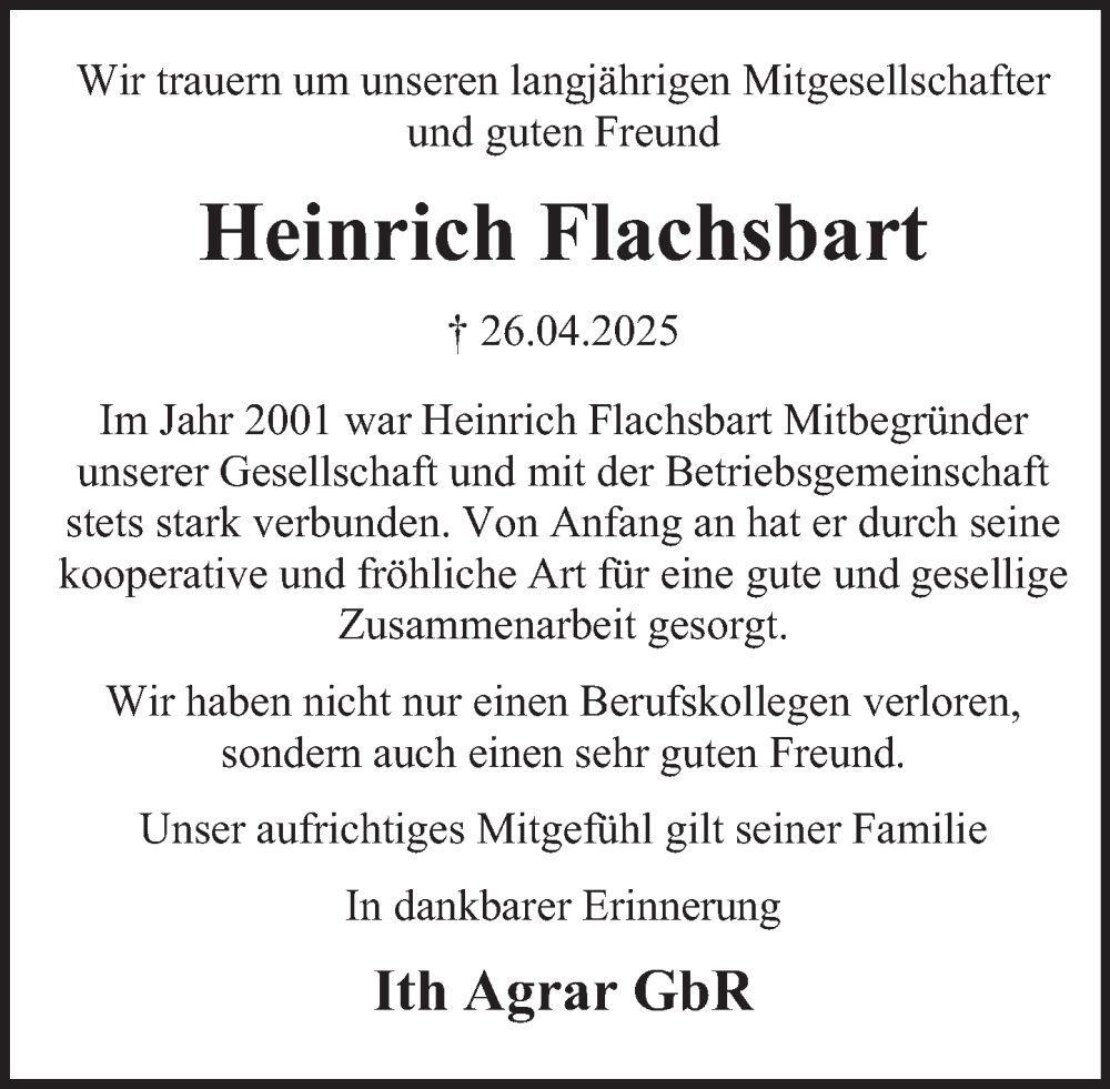 Hier finden Sie alle Traueranzeigen aus der Zeitung, die bisher für Heinrich Flachsbart erschienen sind. Weitere Traueranzeigen, die in der Zeitung erscheinen, werden hier ebenfalls aufgelistet