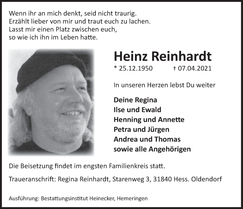 Hier finden Sie alle Traueranzeigen aus der Zeitung, die bisher für Heinz Reinhardt erschienen sind. Weitere Traueranzeigen, die in der Zeitung erscheinen, werden hier ebenfalls aufgelistet