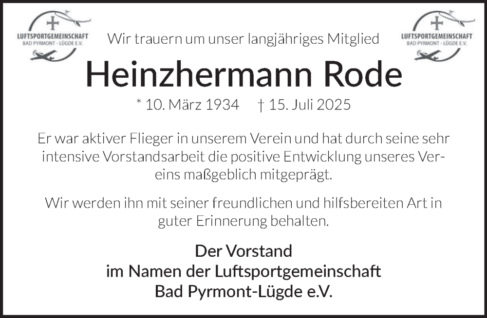 Hier finden Sie alle Traueranzeigen aus der Zeitung, die bisher für Heinzhermann Rode erschienen sind. Weitere Traueranzeigen, die in der Zeitung erscheinen, werden hier ebenfalls aufgelistet