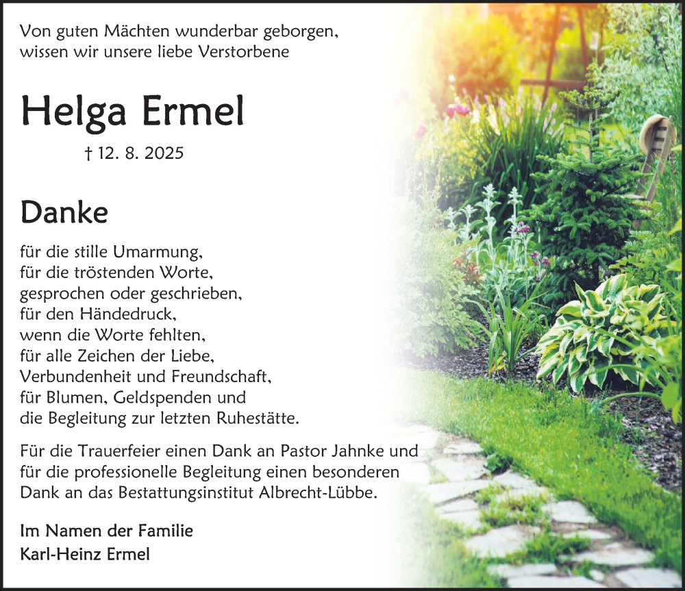 Hier finden Sie alle Traueranzeigen aus der Zeitung, die bisher für Helga Ermel erschienen sind. Weitere Traueranzeigen, die in der Zeitung erscheinen, werden hier ebenfalls aufgelistet