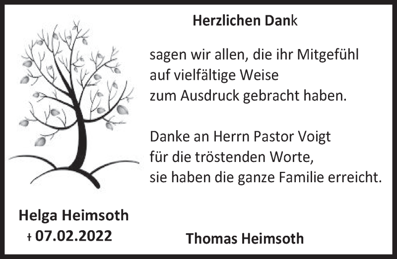 Hier finden Sie alle Traueranzeigen aus der Zeitung, die bisher für Helga Heimsoth erschienen sind. Weitere Traueranzeigen, die in der Zeitung erscheinen, werden hier ebenfalls aufgelistet