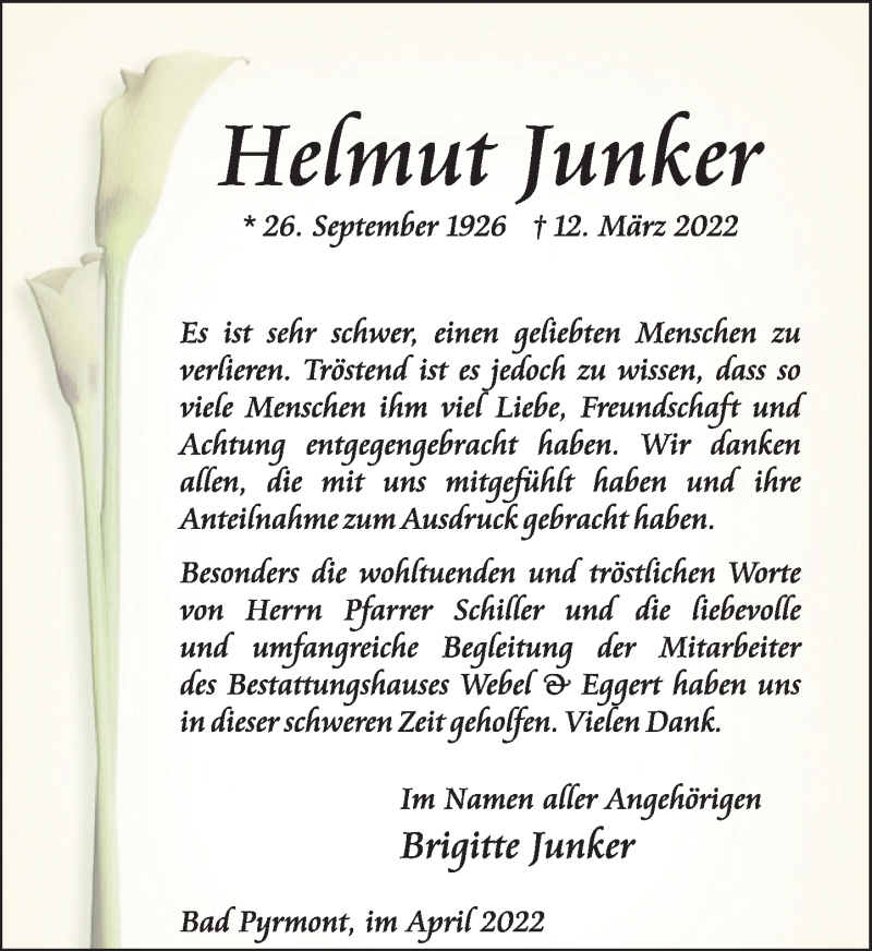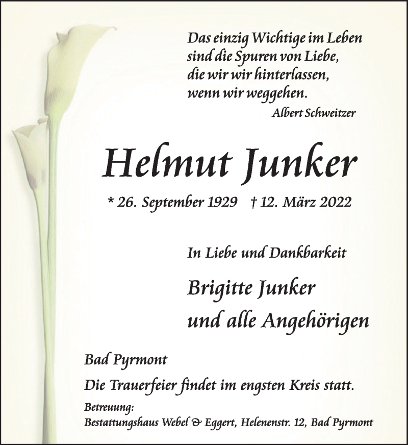 Hier finden Sie alle Traueranzeigen aus der Zeitung, die bisher für Helmut Junker erschienen sind. Weitere Traueranzeigen, die in der Zeitung erscheinen, werden hier ebenfalls aufgelistet