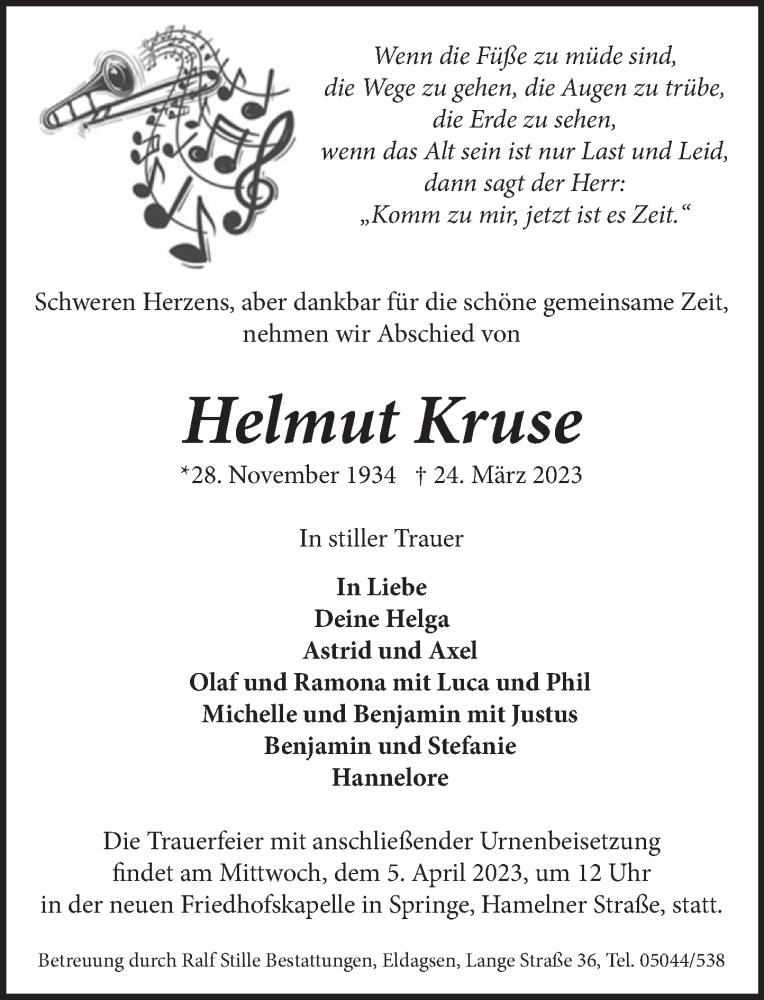 Hier finden Sie alle Traueranzeigen aus der Zeitung, die bisher für Helmut Kruse erschienen sind. Weitere Traueranzeigen, die in der Zeitung erscheinen, werden hier ebenfalls aufgelistet