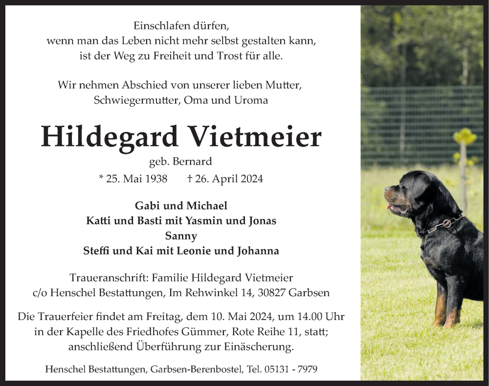 Hier finden Sie alle Traueranzeigen aus der Zeitung, die bisher für Hildegard Vietmeier erschienen sind. Weitere Traueranzeigen, die in der Zeitung erscheinen, werden hier ebenfalls aufgelistet
