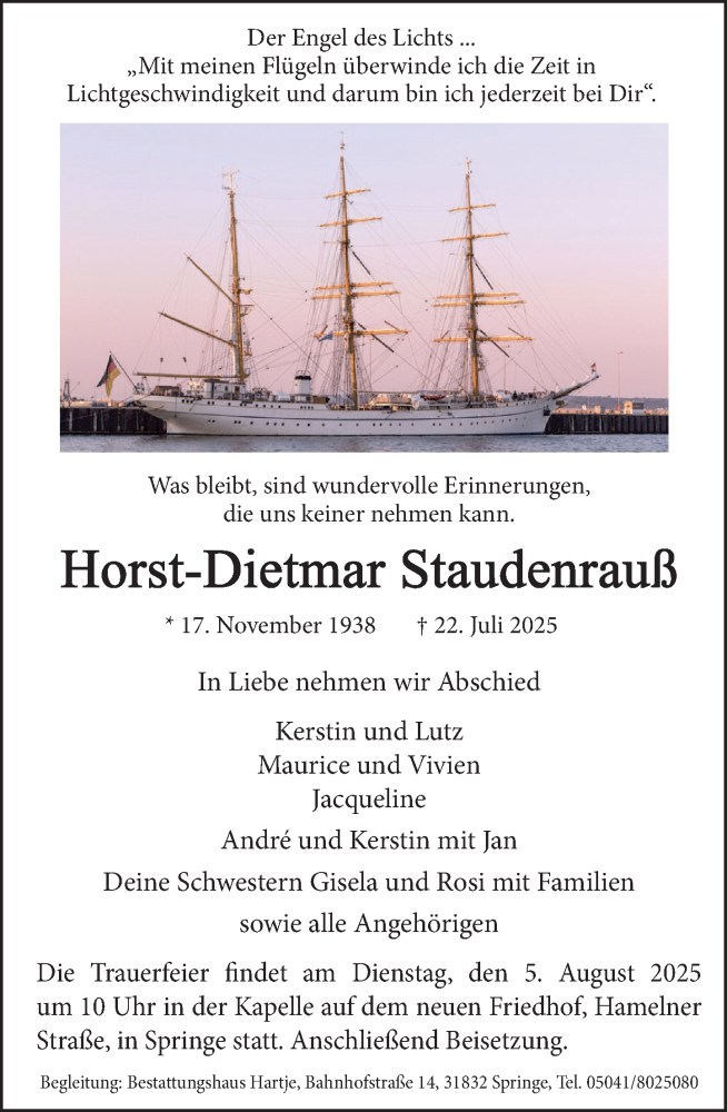Hier finden Sie alle Traueranzeigen aus der Zeitung, die bisher für Horst-Dietmar Staudenrauß erschienen sind. Weitere Traueranzeigen, die in der Zeitung erscheinen, werden hier ebenfalls aufgelistet
