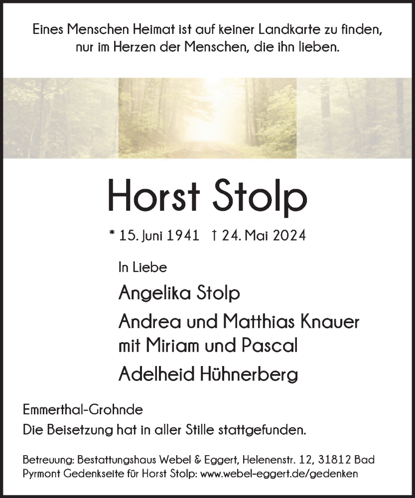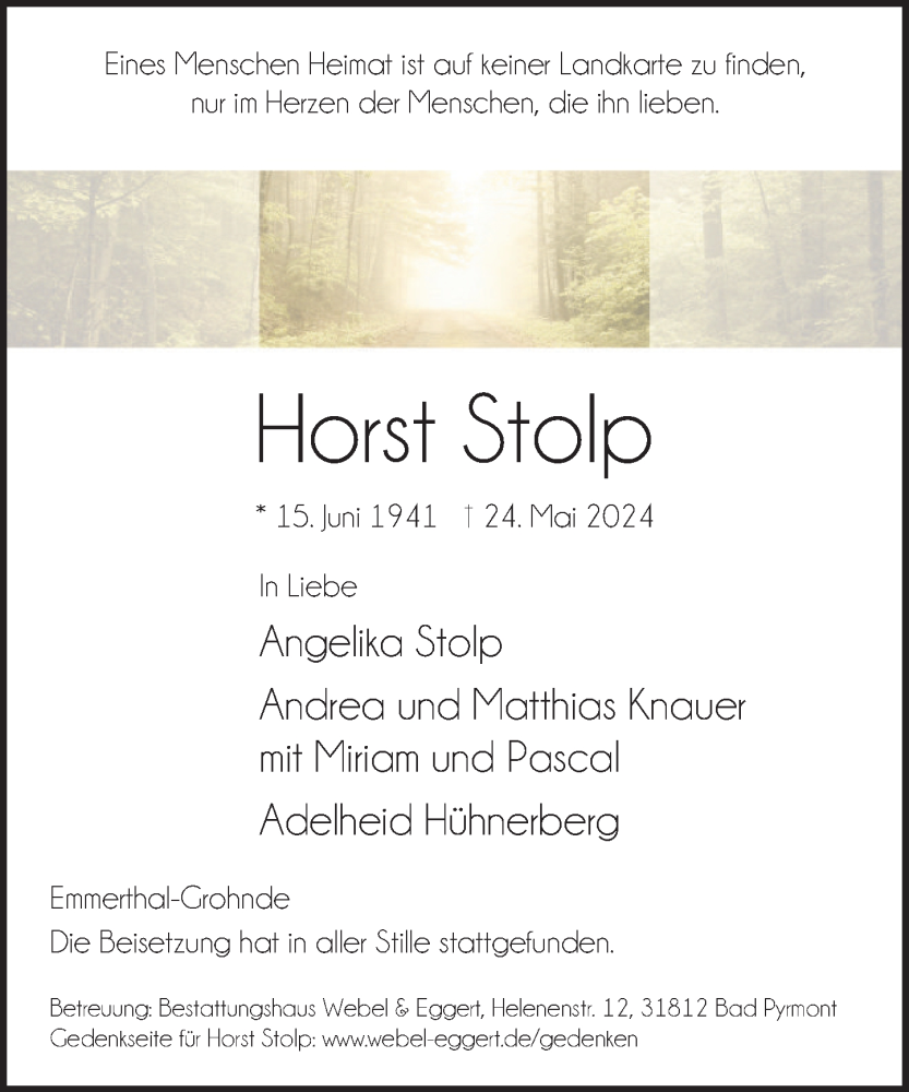 Hier finden Sie alle Traueranzeigen aus der Zeitung, die bisher für Horst Stolp erschienen sind. Weitere Traueranzeigen, die in der Zeitung erscheinen, werden hier ebenfalls aufgelistet