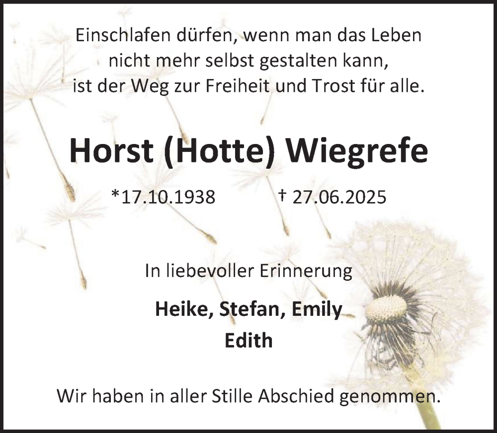 Hier finden Sie alle Traueranzeigen aus der Zeitung, die bisher für Horst Wiegrefe erschienen sind. Weitere Traueranzeigen, die in der Zeitung erscheinen, werden hier ebenfalls aufgelistet