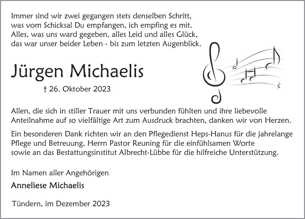 Hier finden Sie alle Traueranzeigen aus der Zeitung, die bisher für Jürgen Michaelis erschienen sind. Weitere Traueranzeigen, die in der Zeitung erscheinen, werden hier ebenfalls aufgelistet