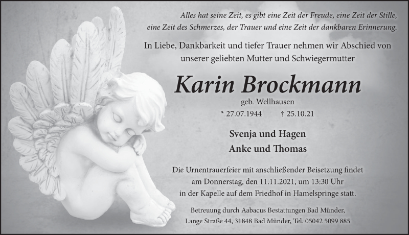 Hier finden Sie alle Traueranzeigen aus der Zeitung, die bisher für Karin Brockmann Wellhausen erschienen sind. Weitere Traueranzeigen, die in der Zeitung erscheinen, werden hier ebenfalls aufgelistet