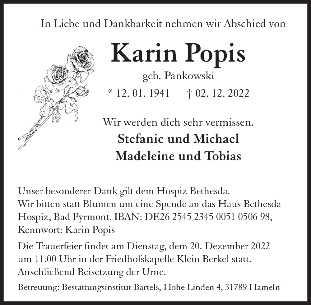 Hier finden Sie alle Traueranzeigen aus der Zeitung, die bisher für Karin Popis erschienen sind. Weitere Traueranzeigen, die in der Zeitung erscheinen, werden hier ebenfalls aufgelistet