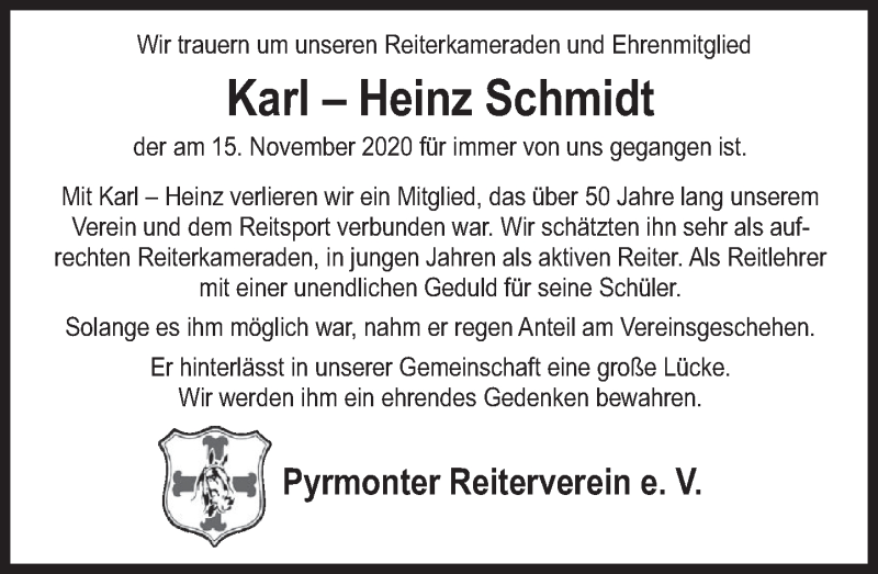 Hier finden Sie alle Traueranzeigen aus der Zeitung, die bisher für Karl Heinz Schmidt erschienen sind. Weitere Traueranzeigen, die in der Zeitung erscheinen, werden hier ebenfalls aufgelistet
