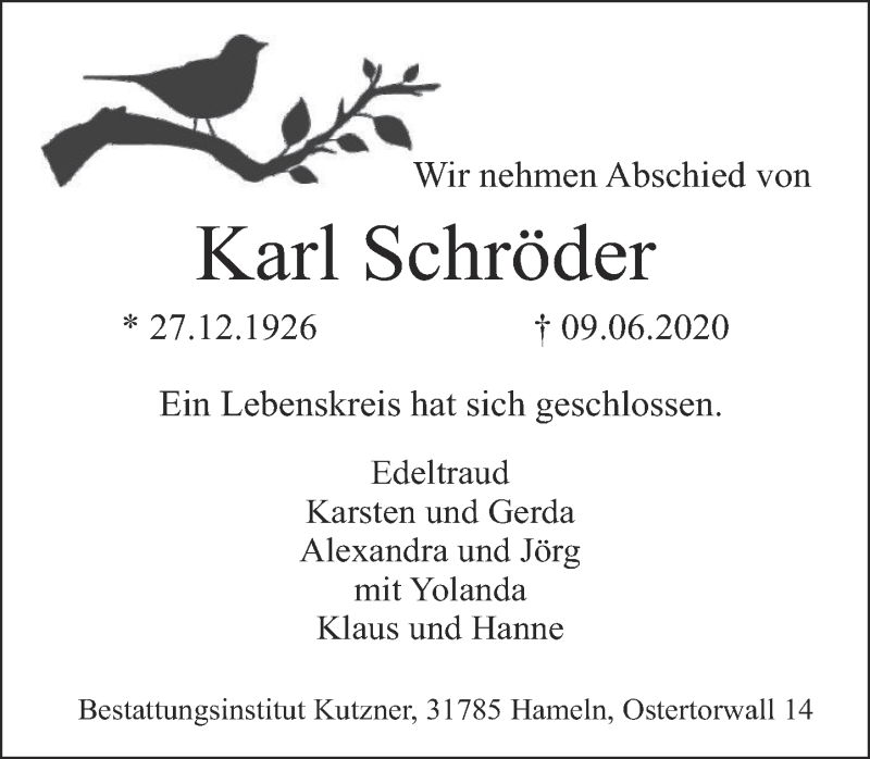 Hier finden Sie alle Traueranzeigen aus der Zeitung, die bisher für Karl Schröder erschienen sind. Weitere Traueranzeigen, die in der Zeitung erscheinen, werden hier ebenfalls aufgelistet