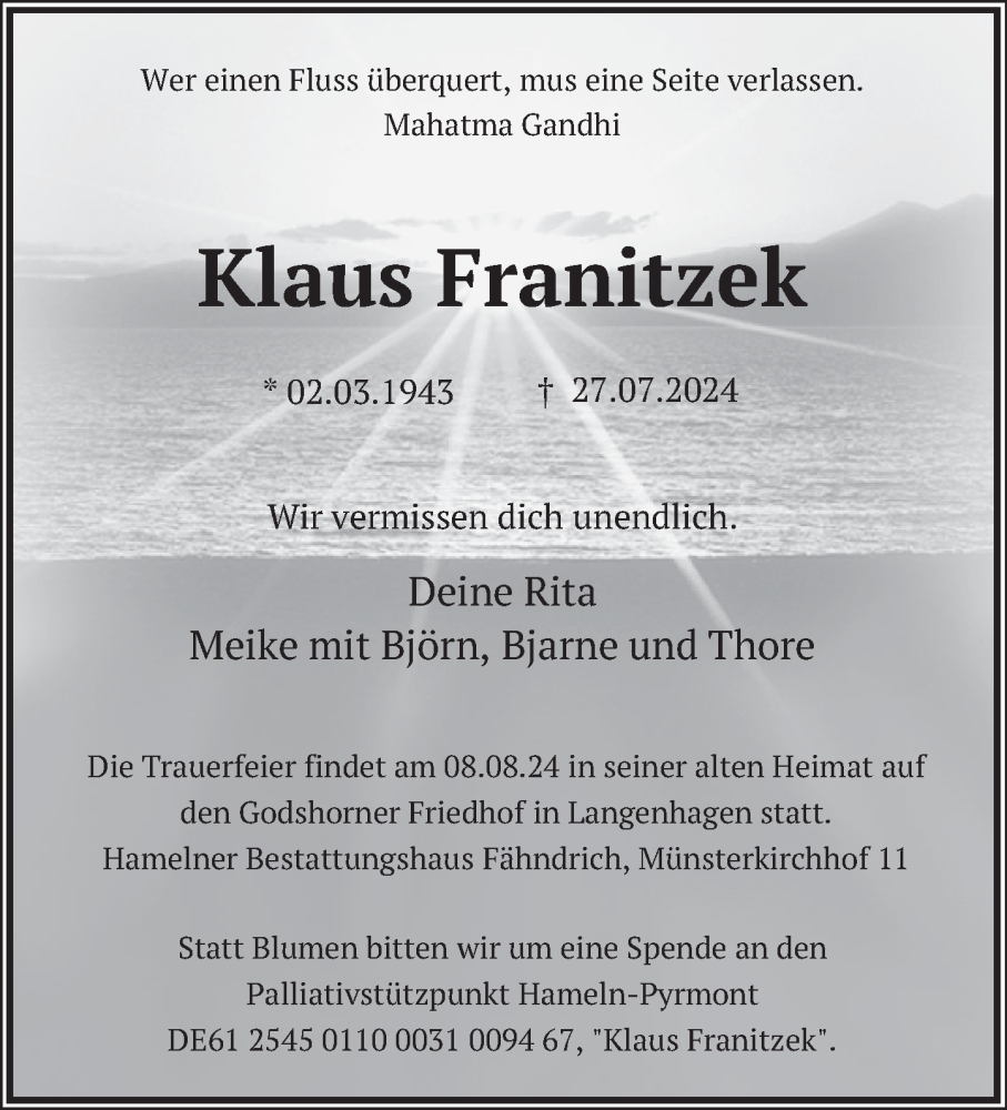 Hier finden Sie alle Traueranzeigen aus der Zeitung, die bisher für Klaus Franitzek erschienen sind. Weitere Traueranzeigen, die in der Zeitung erscheinen, werden hier ebenfalls aufgelistet